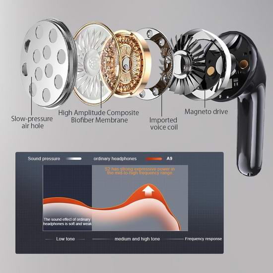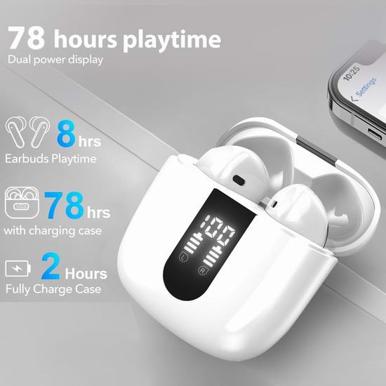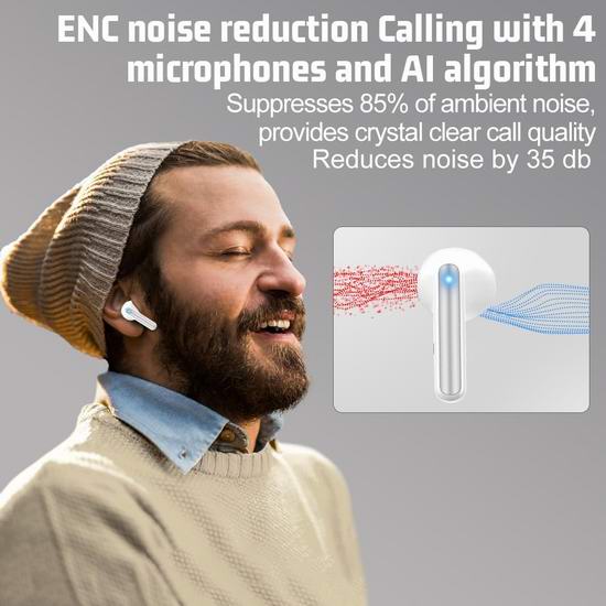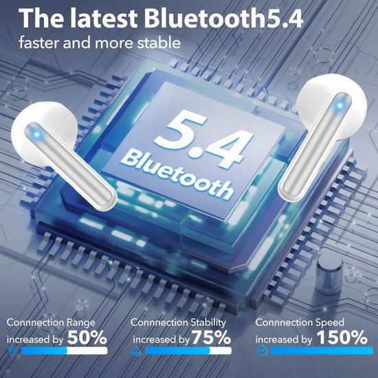 搭载最新 BT5.4 芯片,功耗更低,传输速度更快。60ms低延迟,支持 SBC 和 AAC 等高级音频传输协议,可快速配对并兼容所有蓝牙设备。内置四个降噪麦克风,有效抑制环境噪音,带来清晰通透的通话体验。耳机具有360°卓越音质,从强劲的低音到自然的中音和轻松的高音,忠实再现原始声音。搭载13毫米大直径音频驱动器,采用高振幅复合生物纤维振膜。耳机续航时间6-7小时,与充电盒搭配使用,最长续航60小时。