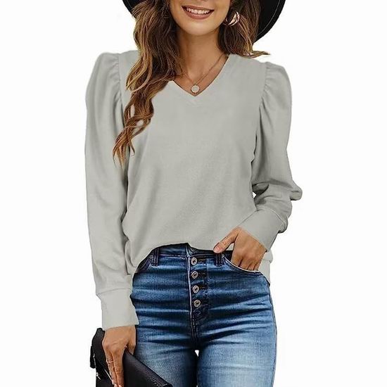 这款女式长袖衫采用柔软舒适的弹力材料,含有90%涤纶和10%氨纶,轻便、舒适且保暖。经典V领设计搭配可爱的泡泡袖,让您更显迷人。它可以轻松搭配牛仔裤、打底裤、短裤、运动鞋、靴子及任何类型的外套,打造时尚优雅的造型。宽松经典的束腰设计使其非常适合各种场合,包括约会、日常、旅行、工作和聚会,是每位时尚女性的必备单品。