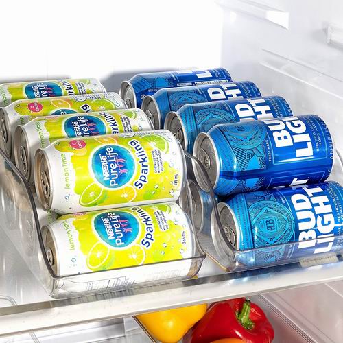 由优质塑料制成,不含双酚A ,结实耐用,透明的,温度范围 -20 度至 50 度,非常适合存放和整理餐具室,以最大限度地增加存储空间冰箱、冰柜、橱柜、橱柜、餐具室架子、工作台面。尺寸为 13.5" x 5.5" x 3.75" a,设计用于一次存储多达 9 个标准罐头(12 盎司)。