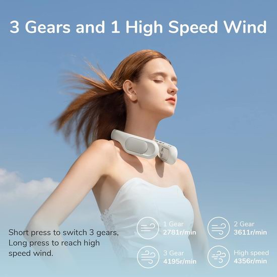 几素挂脖风扇采用双侧气旋进风专利设计,结合冰感云台和低至41.1dB的静音技术,为用户提供极致的清凉体验。其Air Balance™全域平衡风系统,通过黄金三角分区送风,均匀出风,温柔舒适,让您在任何环境下都能享受健康、环绕的清凉风。该风扇具备4档风力设置,包括3档强劲风力和1档户外急速降温档,满足不同使用需求。