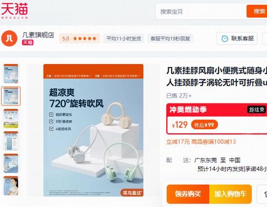 无线使用,强劲4通道气旋式送风,辅助纵向型出风孔,能够更高效切割空气,风量显著提升2倍,急速降温,自然风模式,健康双风效,轻便好收纳,40孔环绕进风,360°调节,双风效系统,涡轮扇叶分区降温,双颊采用长孔,风感清凉柔和。颈部采用短孔,风力大降温快。1秒实现吹风自由,通勤、下厨、出街,全程清爽模式。4档风力,一扇满足多场景需求,充满电后可持续使用5小时。