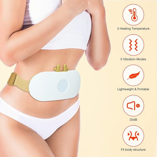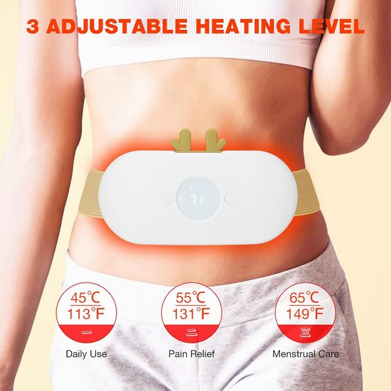 采用亲肤柔软面料,创新轻便透气加热垫,石墨烯发热膜,环绕式设计,舒适易穿,15秒快速加热,3挡热度调节(45℃、55℃和65℃),具有5种高频振动按摩模式,保暖驱寒、暖宫暖胃,有效缓解腰痛、胃痛、肌肉痛和经期疼痛,内置可充电电池,续航时间可达3-8小时,摆脱电线束缚,家庭、办公室、汽车上,随时随地都可以使用。
