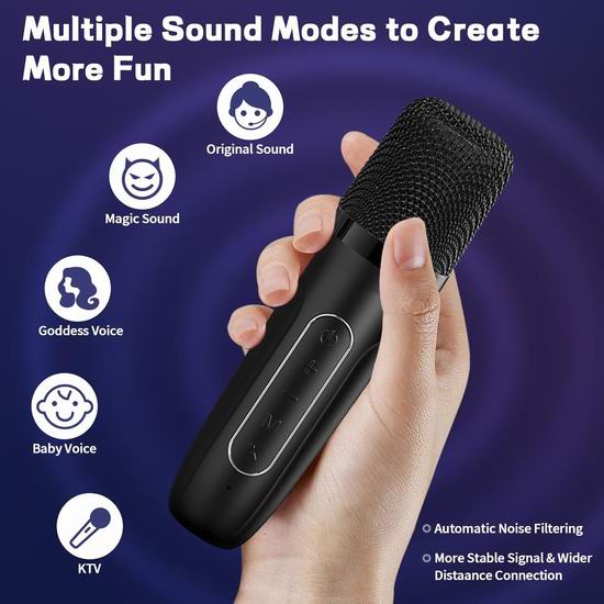 这款卡拉OK机采用双声道立体声系统,提供丰富的高保真音质和立体声效果,提升您的音乐体验。采用最新的蓝牙5.3技术,确保快速配对、稳定传输和广范围连接。支持USB/TF卡和AUX模式播放音乐。配备1个麦克风,拥有五种独特的变声效果,包括婴儿、女声、怪兽、原声和卡拉OK,带你进入一个充满乐趣的世界。内置RGB LED灯,会随着音乐的节奏舞动。具有人声消除技术,让您的音乐体验更加精彩。音箱内置可充电电池,续航时间长达8-12小时。