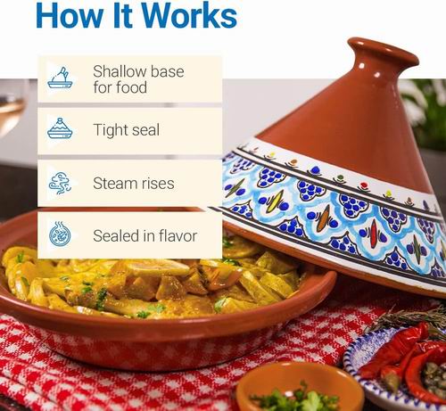 温馨提示:首次使用前,将塔吉锅浸泡在冷水中 36 小时。 烹饪时,将锅放入低温烤箱中(小于或等于375 °F )。 食用时,请勿将锅放在大理石或花岗岩等冰冷的表面上,而应放在木板上,以免破裂。