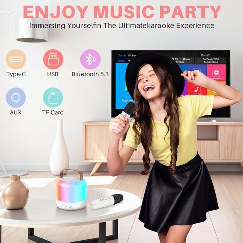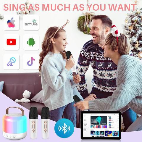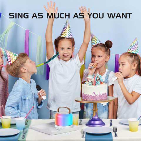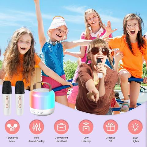 这款儿童卡拉OK机配备两个无线麦克风,支持蓝牙5.3连接、TF卡及U盘播放,并提供男声/女声/怪兽声等四种趣味变音模式;其内置炫彩灯光与睡眠音乐功能,7小时长续航搭配便携设计,适合派对、露营等多种场景,是2-12岁儿童的趣味礼物选择。