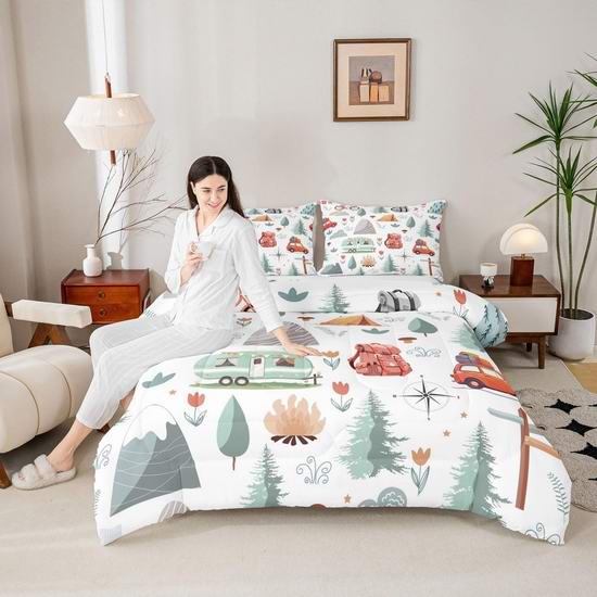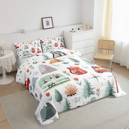 白菜价!历史新低!Erosebridal 快乐露营主题Queen被子3件套2.8折 24.45加元!