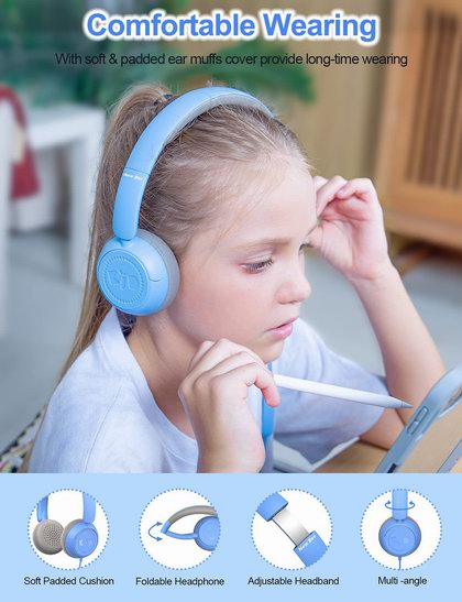 专为儿童设计,采用柔软蛋白质安全耳垫,轻盈舒适,减轻头部负担,保护颈椎发育,拥有出色的音质,高清3D音质还原人声,内置固定安全音量85dB安全分贝限制,满足世界卫生组织推荐标准,防止听力受损,保护孩子的听力。内置线控麦克风。