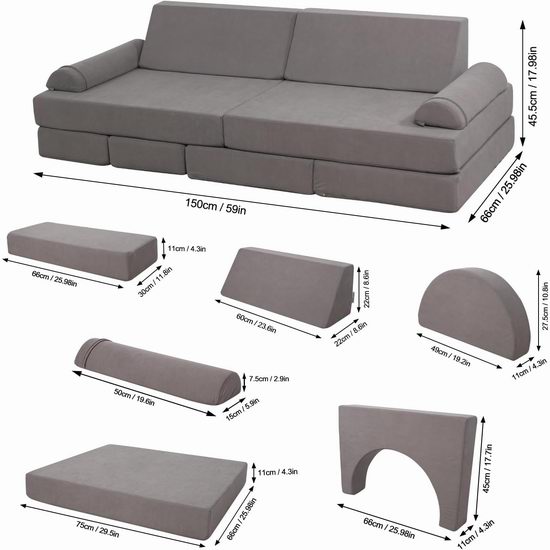 这款儿童游戏组合沙发拥有6种形状,共12块海绵,带来无尽乐趣。它是孩子们的梦幻机器,让他们可以搭建坚固的堡垒、打造欢乐的游乐场,或设计一个安静的阅读角。让孩子尽情发挥创造力,成为房屋建造者。沙发采用高密度海绵,为宝宝的蹦蹦跳跳提供卓越的缓冲和支撑,确保每个快乐时刻都得到妥善保护。采用可水洗、柔软且永不褪色的荷兰天鹅绒套,隐形拉链易于清洁,一擦即净。