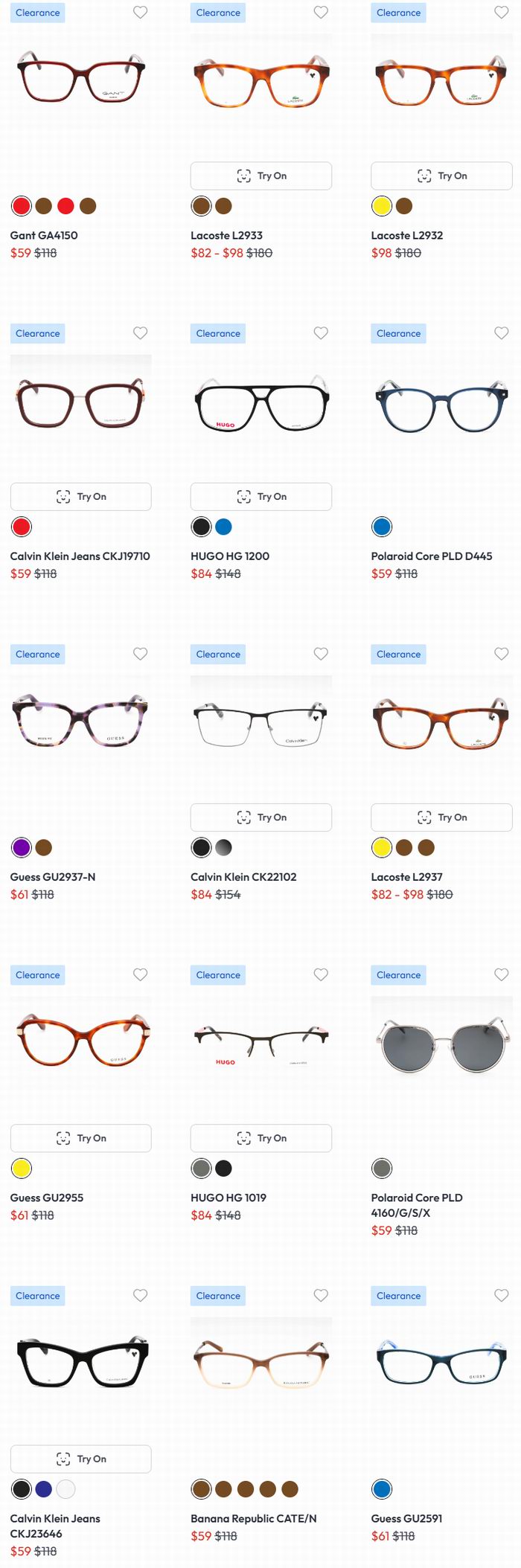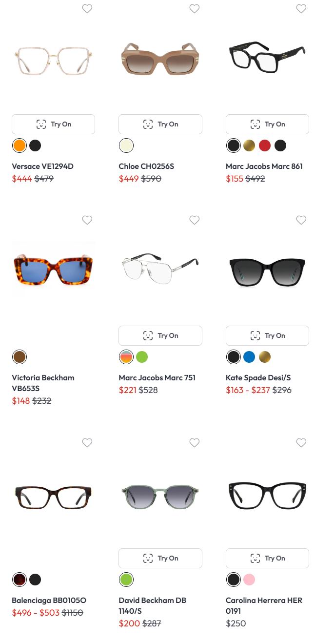 以下是大牌镜框部分促销款式截图: