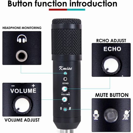 Kmise USB 心形拾音 电容麦克风5折 19.99加元!送三脚架!