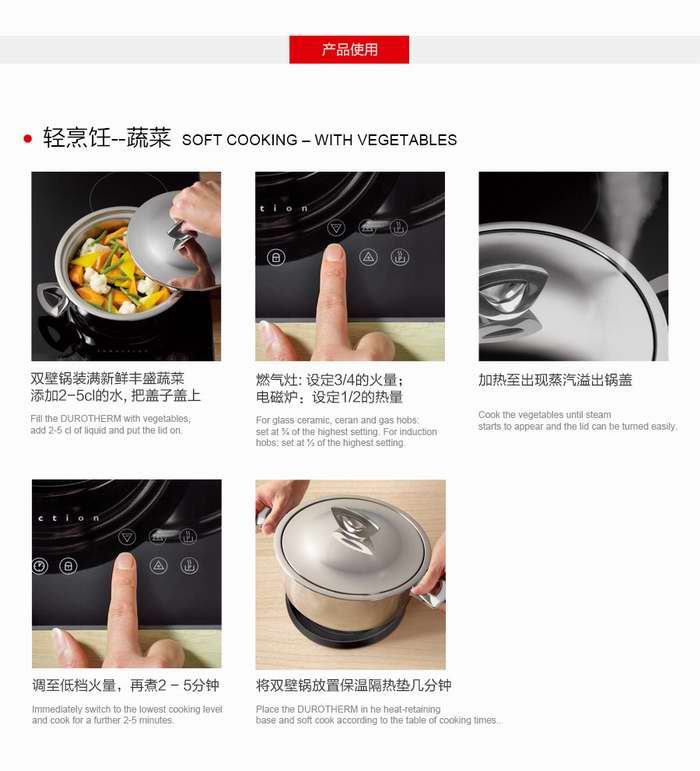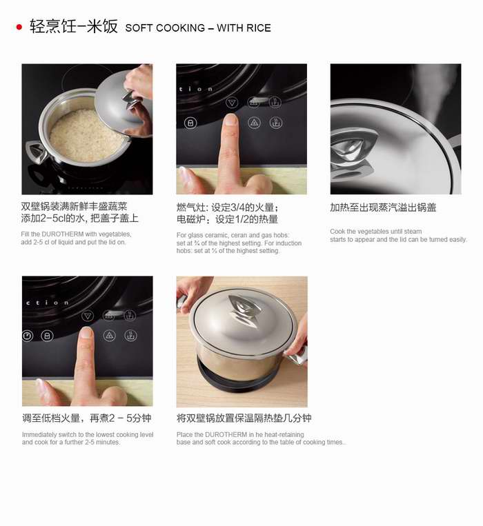 此款双壁锅秉承瑞士品质,健康理念,可一锅3用,可当汤锅、双壁锅、闷烧锅。双层锅壁传热快速,五层超级导热驼峰锅底,节省70%烹饪时间,6分钟可煮好一锅饭,曾获日内瓦国际发明家奖金牌奖。