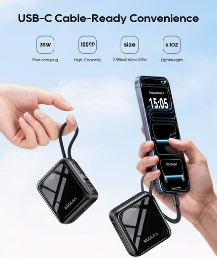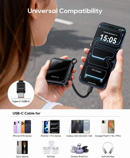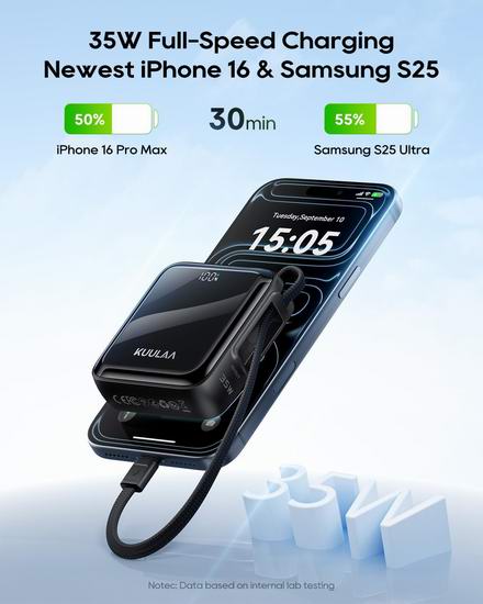历史新低!Kuulaa 10000mAh 35W 快充 超迷你移动电源/充电宝5.3折 19.79加元!集成数据线!