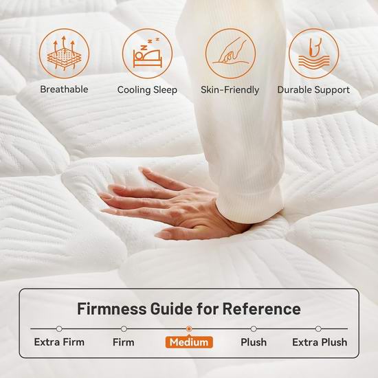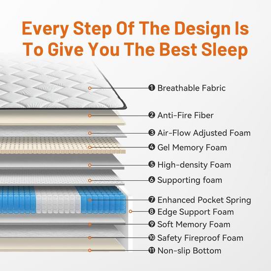这款混合床垫完美融合了两种床垫的优势,既有独立袋装弹簧床垫的传统支撑力,缓解身体压力,提供均衡支撑,每个袋装弹簧独立运作,紧密贴合您的身体曲线,最大限度地减少伴侣或宠物翻身造成的干扰。又有记忆棉的柔软舒适感,缓解疲劳及酸痛,减少酸疼点的产生,提高睡眠质量。双层泡沫结构经过精心设计,完美平衡了柔软度和支撑力。高端针织面料提供卓越的舒适度和透气性,确保您拥有舒适放松的睡眠。