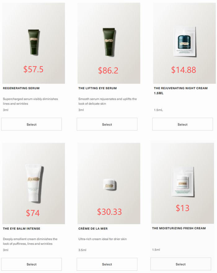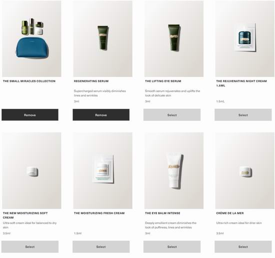 La Mer网店销售,购买价值40加元30ml洗面奶,点击Checkout或PayPal按钮结账后,送自选2件套,全场包邮。点击进入订购页面。