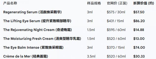 目前礼包已经送完,还有几个中样可以选,折算价值分别为: