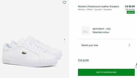 Lacoste 法国鳄鱼 Powercourt 2.0 经典款 女式真皮小白鞋5.6折 69.29加元(官网原价 155加元)