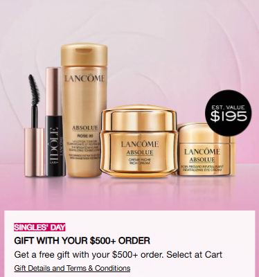 Lancome网店销售,11月12日凌晨3点前,指定款双11套装5折起;