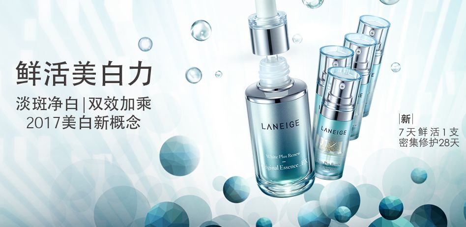 兰芝臻白修护柔肤精华露的核心即绿茶多糖体成分和松露提取物滋润护理肌肤,打造如同噙满水分般的透明闪亮的水分光彩肌肤。