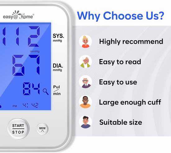 历史新低!Easy@Home EBP-095L 上臂数字式电子血压计5.4折 35.99加元包邮!2色可选!
