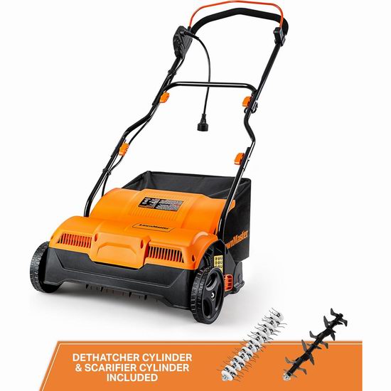除草+打孔二合一设计,可去除草坪枯草层,同时疏松土壤,让草坪更好地呼吸生长。除草机搭载13A强力电机,转速高达3700RPM,可耙出16英寸宽的路径,松土滚筒有14个深度档位,范围从 -0.35 ~ 0.19 英寸,脱草滚筒有-0.19 ~ 0.35英寸,可应对多种地形。无需手动耙草即可轻松收集和处理草坪碎屑,大容量设计减少了倾倒集草袋的次数。手柄高度可调节,无需弯腰或蹲伏。