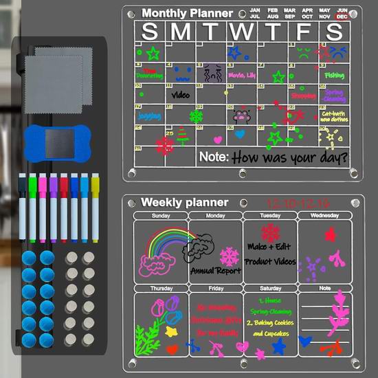 白菜价!历史新低!Laysinly 月计划+周计划 磁性亚克力干擦板2件套+8色笔套装3.3折 9.99加元清仓!送价值19.99加元LED带支架干擦板!3款可选!