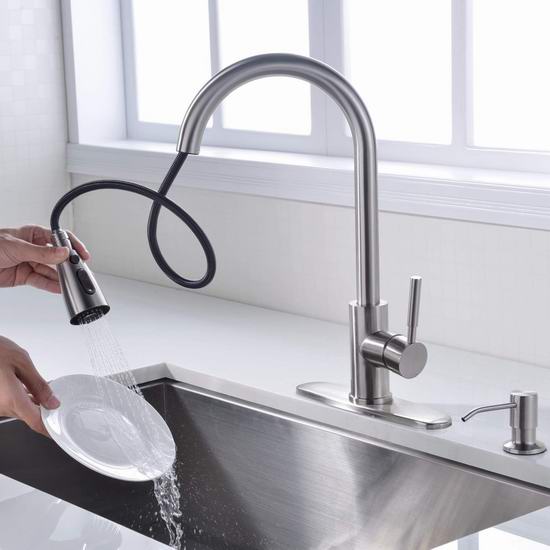 白菜价!历史新低!LAZADA 拉丝镀镍 下拉式不锈钢厨房水龙头2.6折 39.9加元包邮!