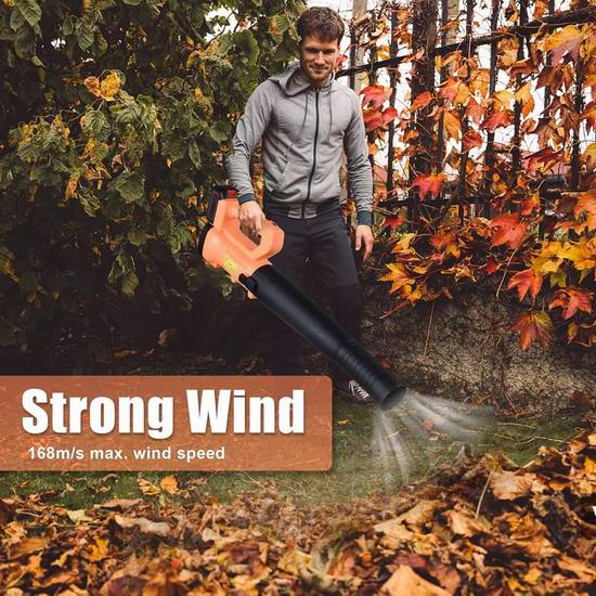 这款电动吹扫机配备强劲的铜芯电机,最高风速可达168米/秒,可高效清除碎屑和树叶。具有6档可调速,包含2种不同类型的吸嘴,轻松应对室内外各种清洁任务。采用高容量电池供电,充电迅速,续航时间长。它不仅可以吹走落叶,还能清除灰尘和薄雪,是您理想的清洁工具。