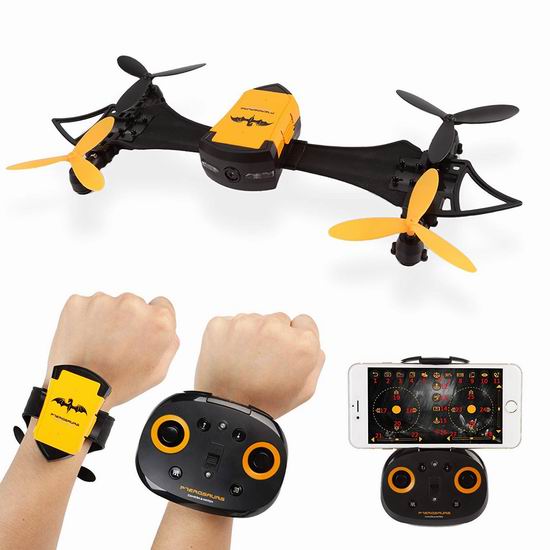 初见CX-70的时候,您可能以为这只是一块炫酷的手表,其实,它是一架可以戴在手腕上的自拍无人机,拥有独特的翼龙造型让它在众多无人机中显得格外与众不同,带上电池也仅重92g,轻巧便携无负重感,伴随着机翼的自由伸缩,就能在手表和自拍无人机之间轻松转换,小身材,大奇迹,炫酷根本停不下来。
