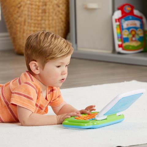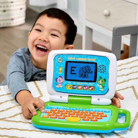 Leapfrog 二合一 LeapTop Touch是一款可在笔记本与平板模式间自由切换的互动学习玩具,配有可翻转触控屏幕。键盘包含 A–Z 字母键与 1–10 数字键,帮助孩子认识字母与数字。具备五种学习模式——字母、数字、游戏、音乐和信息,兼顾学习与娱乐。孩子可通过模拟“发邮件”等互动活动进行角色扮演,提升语言与社交能力。家长还能自定义内容,帮助孩子学习拼写自己的名字,是启蒙阶段的理想早教玩具。