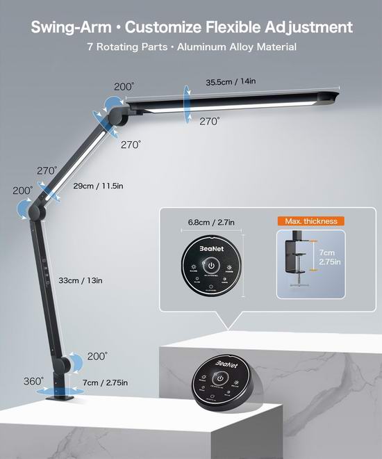 历史新低!Beanet 15W 双灯头 可遥控 LED建筑师台灯4折  39.99加元包邮!