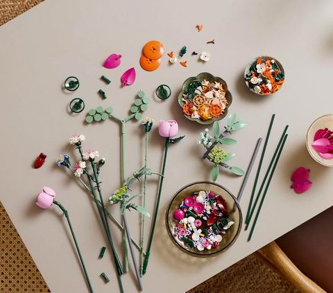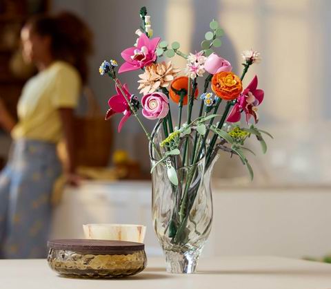专为成人设计,包含 15 朵可拼搭的仿真花卉(如玫瑰、兰花、雏菊、毛茛等),每根花茎均可调节,支持自由组合与重新排列,打造专属花束;全套 749 片积木,拼搭完成后可作为无需维护的桌面或家居装饰(花瓶需另购),既具创作乐趣又有装饰价值,是情人节、纪念日、母亲节或乔迁送礼的别致之选,也可与其他 LEGO 植物系列组合展示。