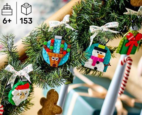 采用红色蝴蝶结、胡萝卜鼻子等节日细节设计,全家可共同参与拼搭,增添节日乐趣。成品可挂于圣诞树或与其他乐高套装展示,是孩子与家庭的理想节日礼物,并支持乐高拼搭大师App的3D数字指导。适合6岁及以上儿童,包含153个积木,可拼出圣诞老人、雪人、驯鹿和礼物等4款可悬挂装饰。