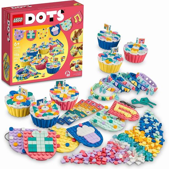 这款有趣的DOTS豪华派对组合可供随时进行快速拼搭和装饰,为创造和尝试提供了机会,还可以帮助父母轻松为一群孩子带来快乐。套装包含6个带糖霜的可定制式纸杯蛋糕(可以拆下糖霜,显露出内部秘密的存储空间)、6 条手环、6 面彩旗及悬挂它们用的绳子,以及大量光板、旗子、饰物和贴纸,可供孩子们以自己喜欢的方式表达自己。本套装还提供派对举办建议,可帮助父母为孩子带来最美好的一天。