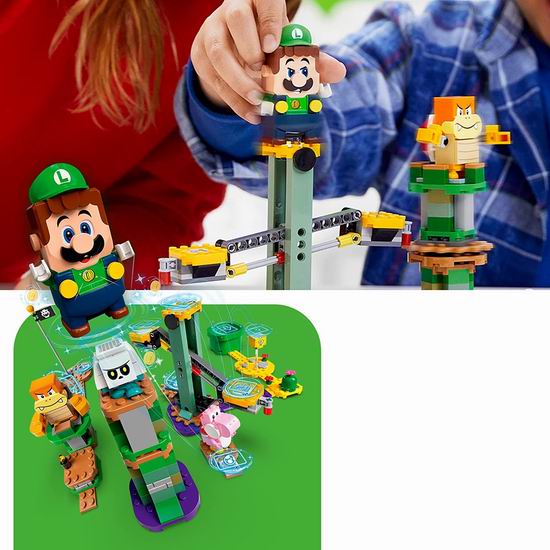 这款内装280块积木颗粒和组件的拼搭套装专为6岁以上的孩子设计,包含旋转式、跷跷板式和飞行式挑战,适合单独玩乐或2人一起玩乐。模块化乐高超级玛丽系统允许粉丝们扩展、重新拼搭及创建属于他们自己的独特关卡。