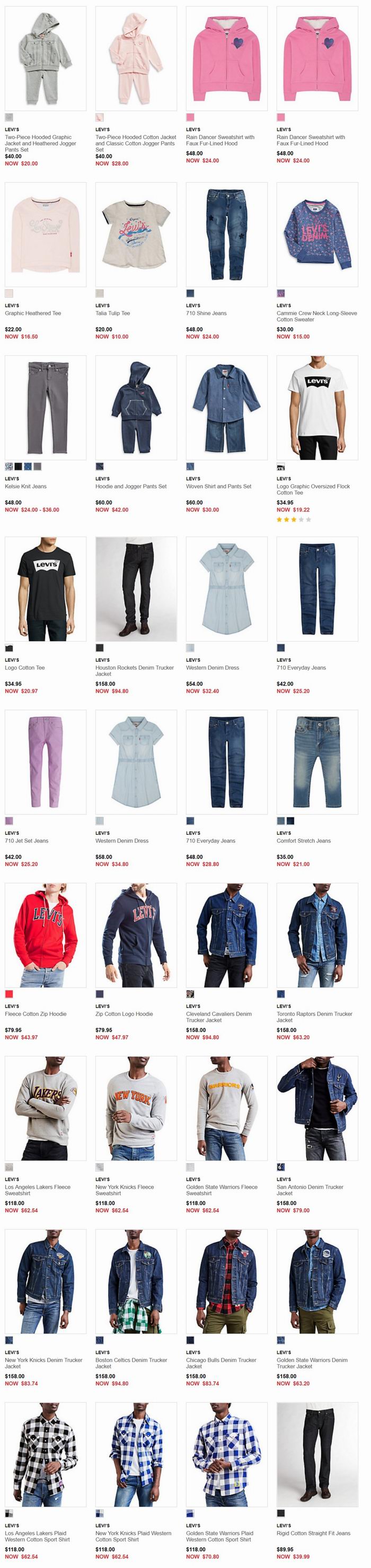 The Bay网店销售,精选  LEVI'S成人儿童服饰,牛仔裤 4.5折 9加元起+包邮,包邮。点击进入订购页面。