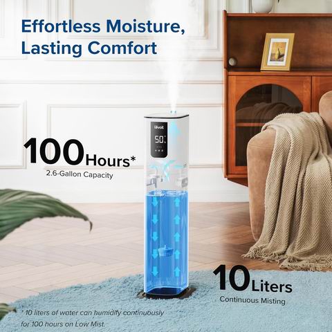 LEVOIT 10L大容量智能加湿器可连续运行长达 100 小时,覆盖面积达 600 平方英尺,雾量高、扩散广,为大房间、卧室或植物养护提供全屋式均匀湿润。支持 VeSync App、语音与遥控器操控,具备自动模式、植物模式、睡眠模式与香薰功能,轻松定制专属湿度体验。顶部一键加水、宽口易清洁,静音运行更适合夜间使用;搭配终身服务,让使用更安心省心。