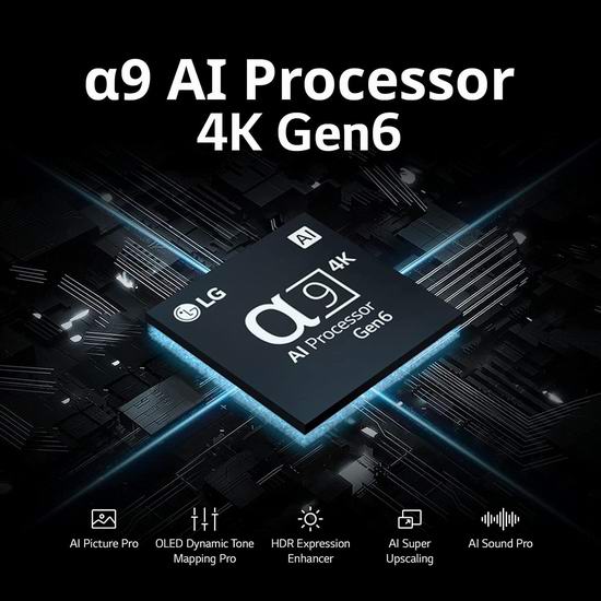 LG OLED EVO 智能电视搭载专为 OLED 显示打造的 a9 AI 处理器 Gen6,提供卓越的画质和出色的性能。亮度增强技术让画面更加明亮,即使在光线充足的房间内也能呈现高对比度的清晰影像。AI 深度学习可分析正在播放的内容,并自动优化画面和音效,确保沉浸式的观影体验。