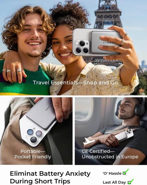 LISEN Qi2超薄Magsafe移动电源厚度仅约0.3英寸,搭载5000mAh容量与Qi2认证技术,支持15W无线快充(有线可达22.5W),可在1小时内将iPhone 17充至50%电量,同时通过NTC温控技术有效控制发热。其13N强力磁铁确保稳固吸附,超薄机身便于通勤、旅行等随身携带,并拥有FCC、UL、Qi2等多项国际安全认证。包装内含USB-C数据线,提供24个月质保与全天候客户支持,在保证高效充电的同时兼顾使用安全。
