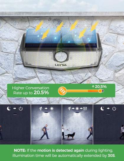Litom 200 LED 超亮太阳能室外运动感应灯 16.99加元!