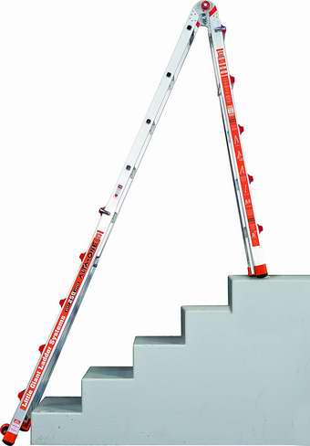 采用加厚航空铝合金材质,高强度,结构稳固,可避免95%的梯子意外事故。创新式设计,多功能设计, 一把梯子有33种用途,可作为人字梯、直梯、90度梯等使用,可以在一边高一边低场合使用,可以使用在各种不同状况和场合,可有不同高低的调整时用,可以很贴近墙面的工作。超过OSHA和ANSI的承重标准, 达到250磅。