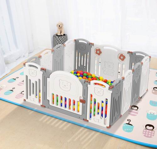 采用优质无毒商业级 HDPE 材料制成,每个面板底部都配有橡胶吸盘,坚固耐用,配有锁门,非常安全,面板的高度足以让宝宝站立和行走,同时内部空间充足,可供他们四处探索。同时让宝宝远离伤害,妈妈们可以腾出双手做自己的事情,比如做家务。  非常适合 6 个月以上的孩子。圆形尺寸约为 1480x1816mm(直径)。