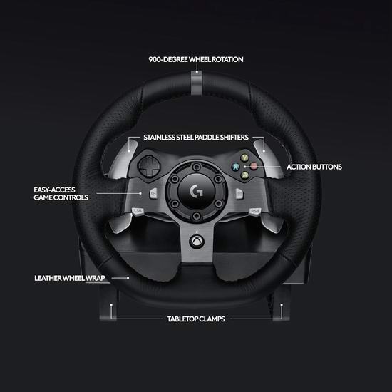 此款方向盘采用手工缝制真皮包裹,带有双力回馈马达,全钢滚珠轴承,可左右各旋转两圈半,精确光学引擎,静音金属换挡拨片,方向盘选用平底设计,加入了完整的XBOX ONE手柄键位,PS3、PS4版还有专门的GT赛车游戏调整按键以及转速/换挡指示灯。