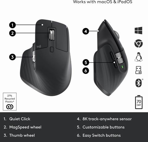 • 同时配对3台设备(Logi Bolt/USB接收器+蓝牙)