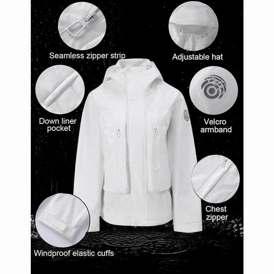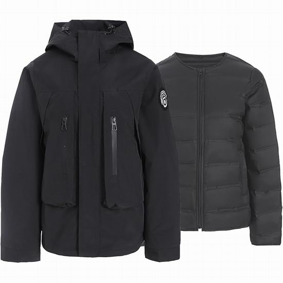 这款羽绒服采用三合一设计,可拆卸内胆,填充90%白鸭绒,可单独作为羽绒服穿着,也可作为防水外壳穿着,或两者结合使用。专业防水防风面料,有效抵御雨雪和强风。滑雪、单板滑雪或徒步旅行时,保持干爽舒适。配备4个拉链口袋、2个隐藏式大内袋,以及可调节的袖口、帽檐和下摆,共6个口袋,可安全存放您的必需品。