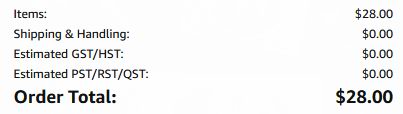 Amazon网店销售,上市价:149.55加元,现价:37.33加元,加入购物车降为28加元,美国亚马逊发货,订单低于40加元免税,运费7.39加元(非会员总价35.39加元),Prime会员免运费(会员总价28加元)。点击进入订购页面