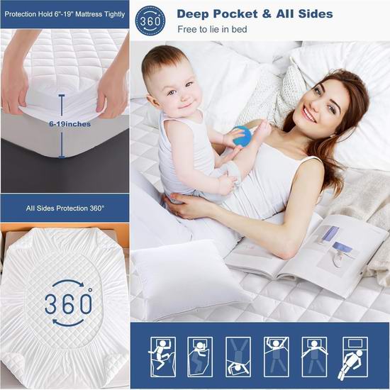 采用尖端防水屏障技术,保护床垫免受液体溢出、污渍和潮湿的影响。柔软的织物结构,可防止运动过程中产生干扰性的皱褶声。舒适透气面料,对敏感的皮肤友好,为您提供安全舒适的睡眠环境。弹性深袋设计,可为不同厚度的床垫提供张力固定定位。
