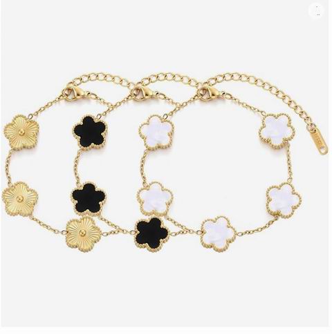 一款女士时尚珠宝三件套,包含白色、黑色、金色三条不同颜色的手链,每条均以四叶草或五叶草为设计元素,采用18K镀金不锈钢材质,结构稳固。手链配备约5厘米的延长链,可灵活调节长度以适应不同手腕。套装包装精美,适合作为生日、圣诞节或情人节礼物送给女性。
