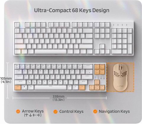 采用65%紧凑布局的68键有线机械键盘,配备热插拔茶轴并兼容各类三脚/五脚轴体,支持18种RGB背光模式与按键自定义;其Type-C接口连接稳定,额外提供两个USB 2.0扩展端口,兼顾游戏、办公与个性化设置需求。该键盘兼容 Windows 7、Windows 8、Windows 10、iOS 和 MAC 系统。