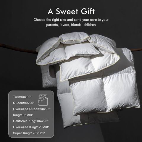 采用 100% 纯棉面料与精细绗缝工艺,触感柔软亲肤、不起静电且经久耐用。被芯填充精选白鹅绒与鹅绒纤维的科学配比,兼顾蓬松度与保暖性,750 蓬松度设计轻盈却温暖,适合四季使用;方格绗缝确保填充均匀不跑绒,并配有 8个角袢,方便固定被套。产品通过 RDS、OEKO-TEX® 等多项国际认证,环保安心、无异味、低噪音,带来舒适安稳的高品质睡眠体验。