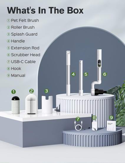 这款电动清洁刷以创新的滚刷设计高效应对各种清洁任务,无论是浴缸、水槽的凹陷区域,还是角落、缝隙、地板、玻璃和瓷砖墙面,都能轻松完成,无需频繁更换刷头。其独特的滚轮结构实现平稳的来回滚动,大幅提高清洁效率和效果。配备两种旋转速度模式,低速300RPM适合日常清洁,高速400RPM则用于顽固污渍深度清洁,轻松缩短清洁时间一半。配有柔软耐磨的宠物毡刷,可轻松去除沙发、地毯等处的宠物毛发和细小碎屑。数字屏幕面板提供实时电量和速度显示,内置2000mAh电池,充满电后可连续使用130分钟。可伸缩手柄设计保护用户的背部和膝盖,调节范围为17至42英寸,方便清洁难以触及的区域。此外,IPX7防水功能保证安全使用,刷头可直接冲洗。